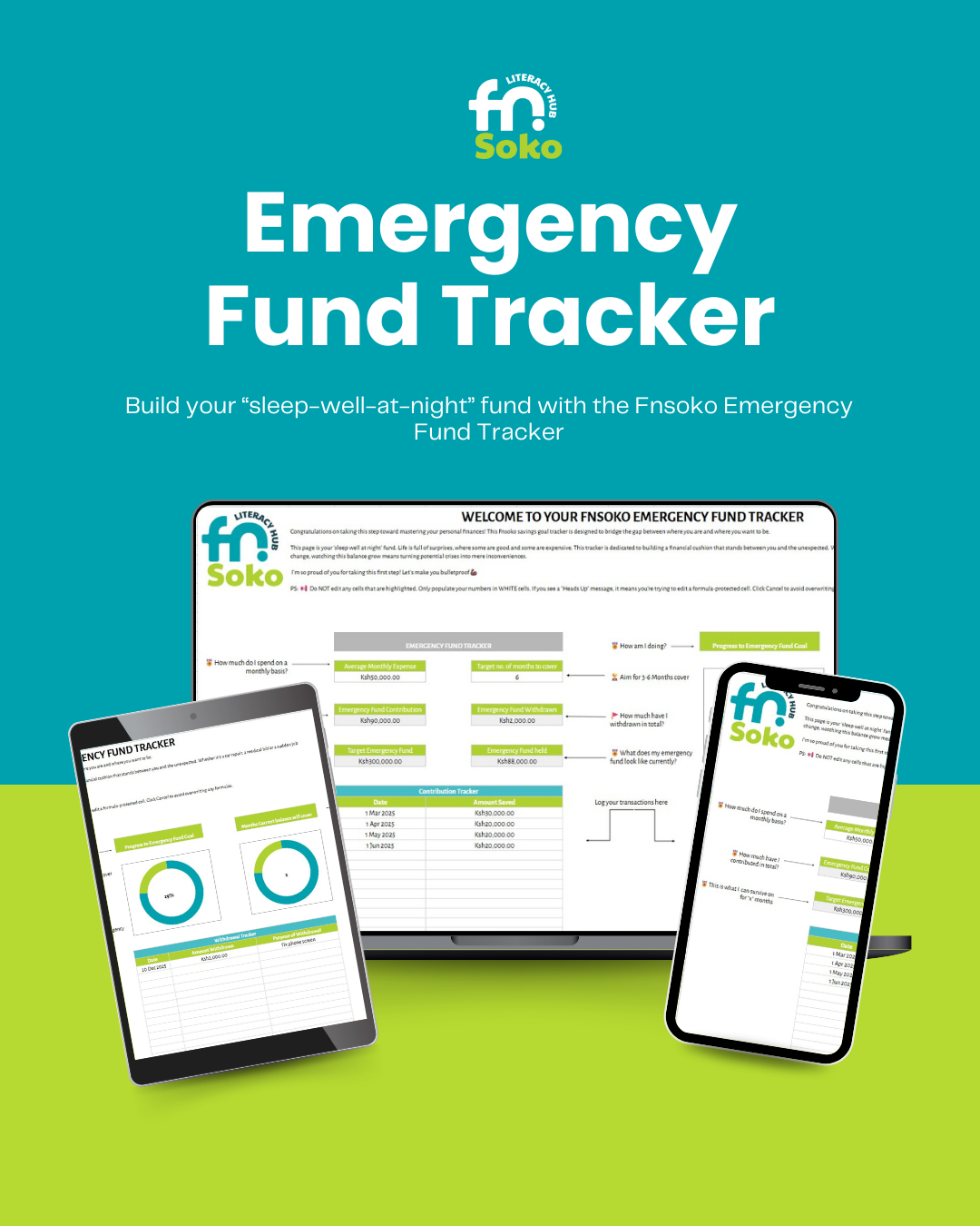 Designed with real Kenyan expenses and income patterns in mind, the Fnsoko Emergency Fund Tracker makes saving for emergencies feel clear, achievable, and empowering — not overwhelming.